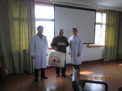 2016年3月29日上午浏河人民医院红十字会志愿者对贫困家庭韩士德进行慰问。