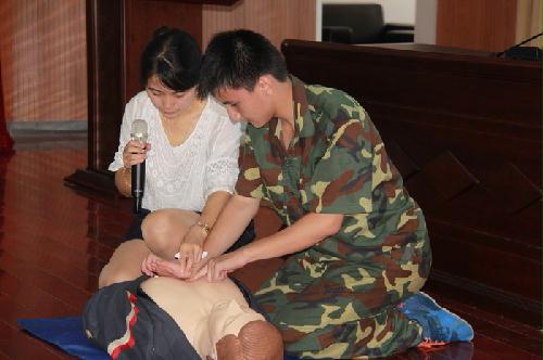 应急救护讲座成了高一新生军训的一堂必修课,培训内容实用,讲解图文并貌,加上现场体验,效果良好。同学们不但能在培训中娱乐,在娱乐中掌握知识,在知识中渗入生活技巧,一举多得。参加本次培训活动的同学纷纷表示他们学到了救护的知识并且深刻感受了救护的理念。在今后他们会将救护的知识应用在实际生活中,用于救助需要帮助的人。