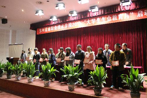 2015年12月1日下午,在苏州健雄职业技术学院报告厅里“2015大学生生命教育月启动仪式”拉开了帷幕,苏州市红十字会副会长严晓凤,bet365比分网专职副会长杨瑞兰,太仓市卫计委副主任周纯,宣传科科长顾海兵,太仓市疾控中心副主任任福琳以及师生代表约300余人出席会议。
