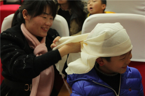 妈妈学习头部包扎