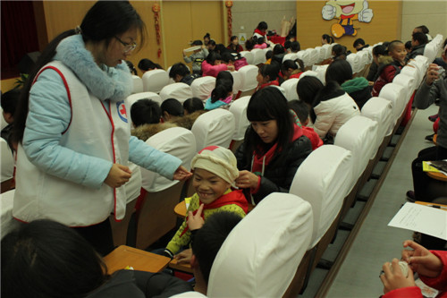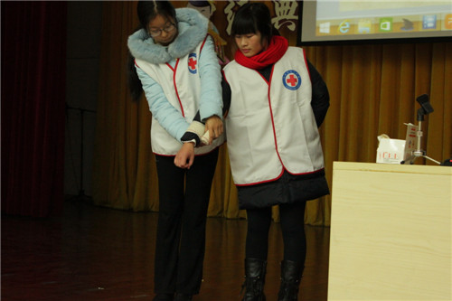 志愿者演示绷带环形包扎