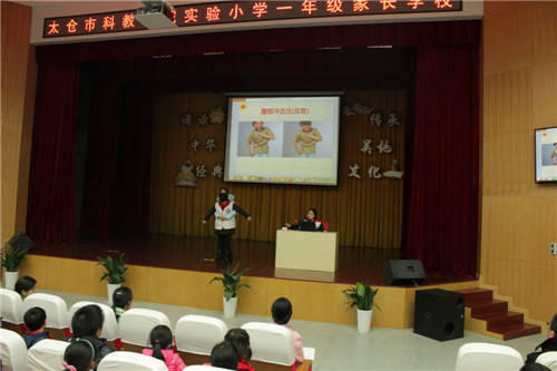 12月8日晚,科教新城实验小学新星剧场内全体一年级家长和孩子一起参与了一堂生命课程——红十字应急救护亲子讲座,市红会为每个家庭发放了《市民救护读本》、《少儿自救常识》和急救包,这也是今年bet365比分网承接总会生命健康安全教育项目以来举办的第五场亲子活动。