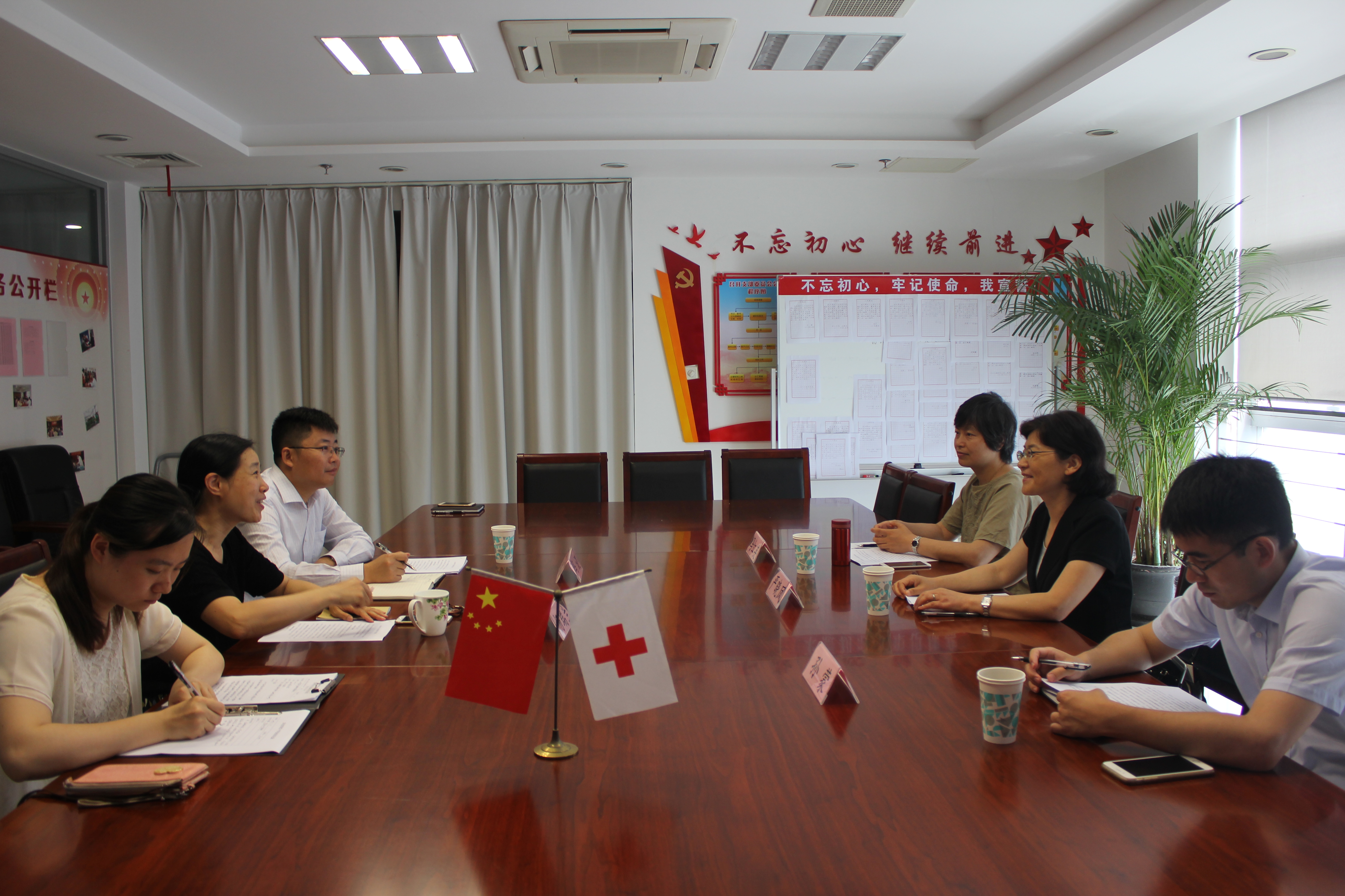 5月15日,苏州市红十字会党组书记、常务副会长严晓凤一行3人前来bet365比分网走访调研,了解换届准备工作,并就公益应急救护培训,养老照护,博爱家园等项目的推进情况进行了考察座谈,市委组织部相关领导参与座谈。