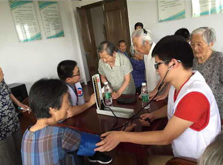 在夏日炎炎的8月18日下午,浏家港卫生院彩虹志愿者服务队的四名医务人员来到浮桥疗养院,为入住的70位老人量血压,做健康体检,老人们纷纷围在这些年轻人的身边,咨询着自己的健康问题,倾听相关的健康教育知识。彩虹队员们深深的感受到老年人需要社会的关怀,需要志愿者们的关爱。他们表示会继续服务于他们,尽自己的一份微薄之力来换得老人的快乐与幸福。